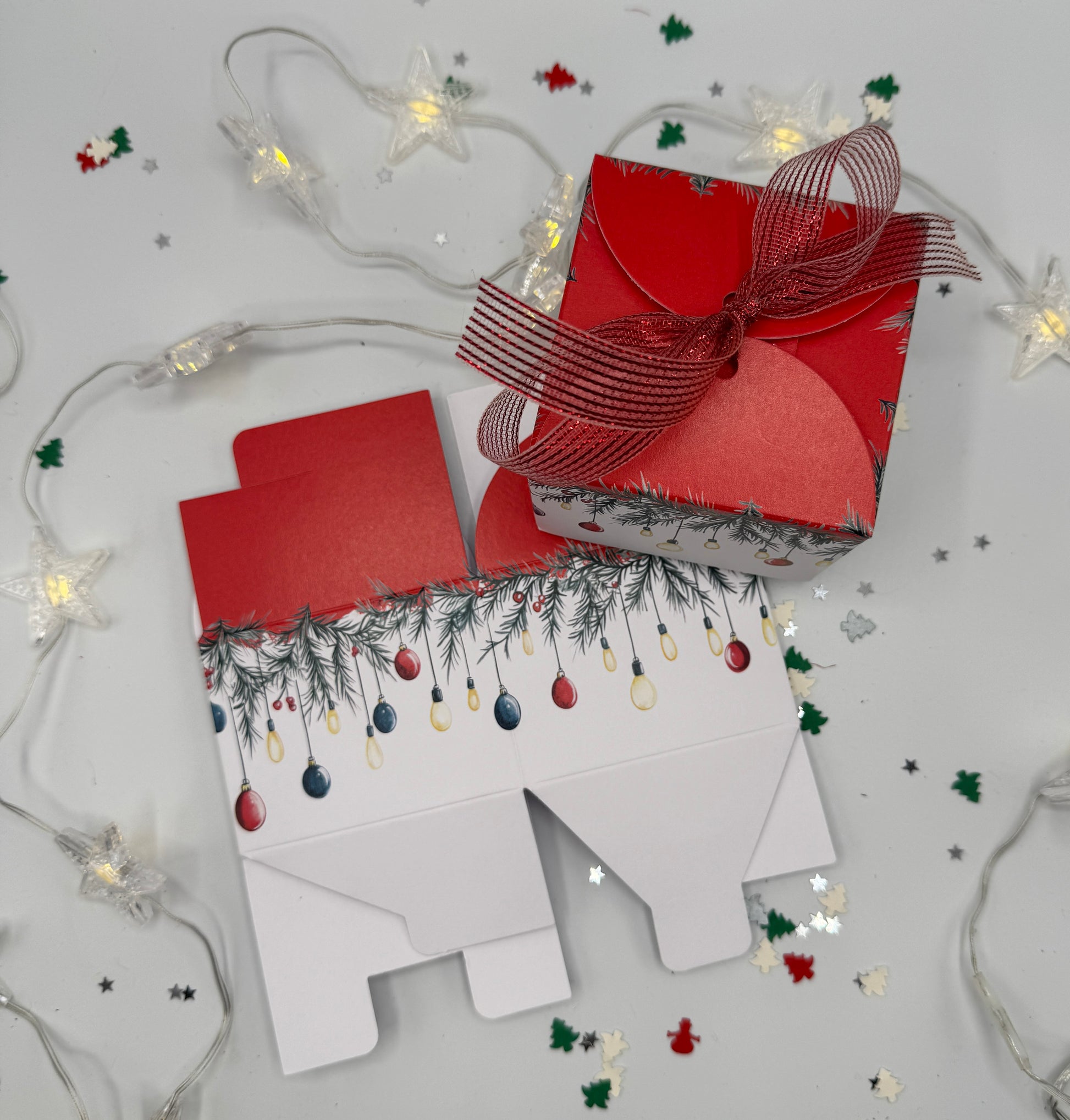 'BAUBLE GARLAND' Gift Boxes - Set of 6 | Size: 8 x 8 x 6cm | Tie Top + Metallic ribbon
