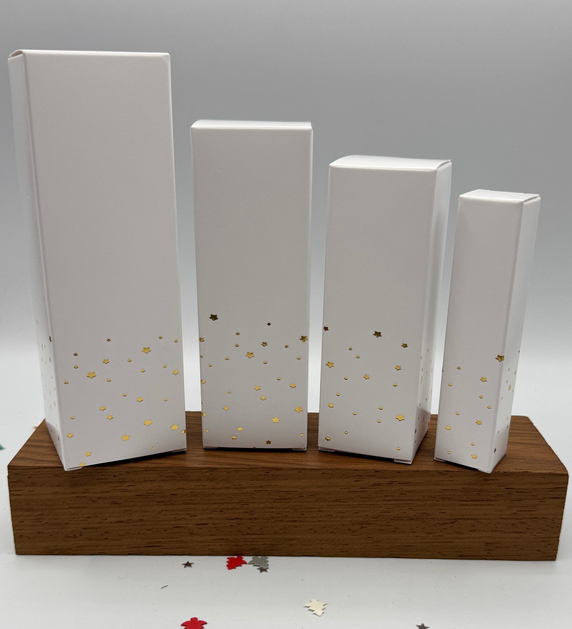 GOLD STARS Bottle Box | WHITE - 6 size options 10ml-100ml | Limited Quantity