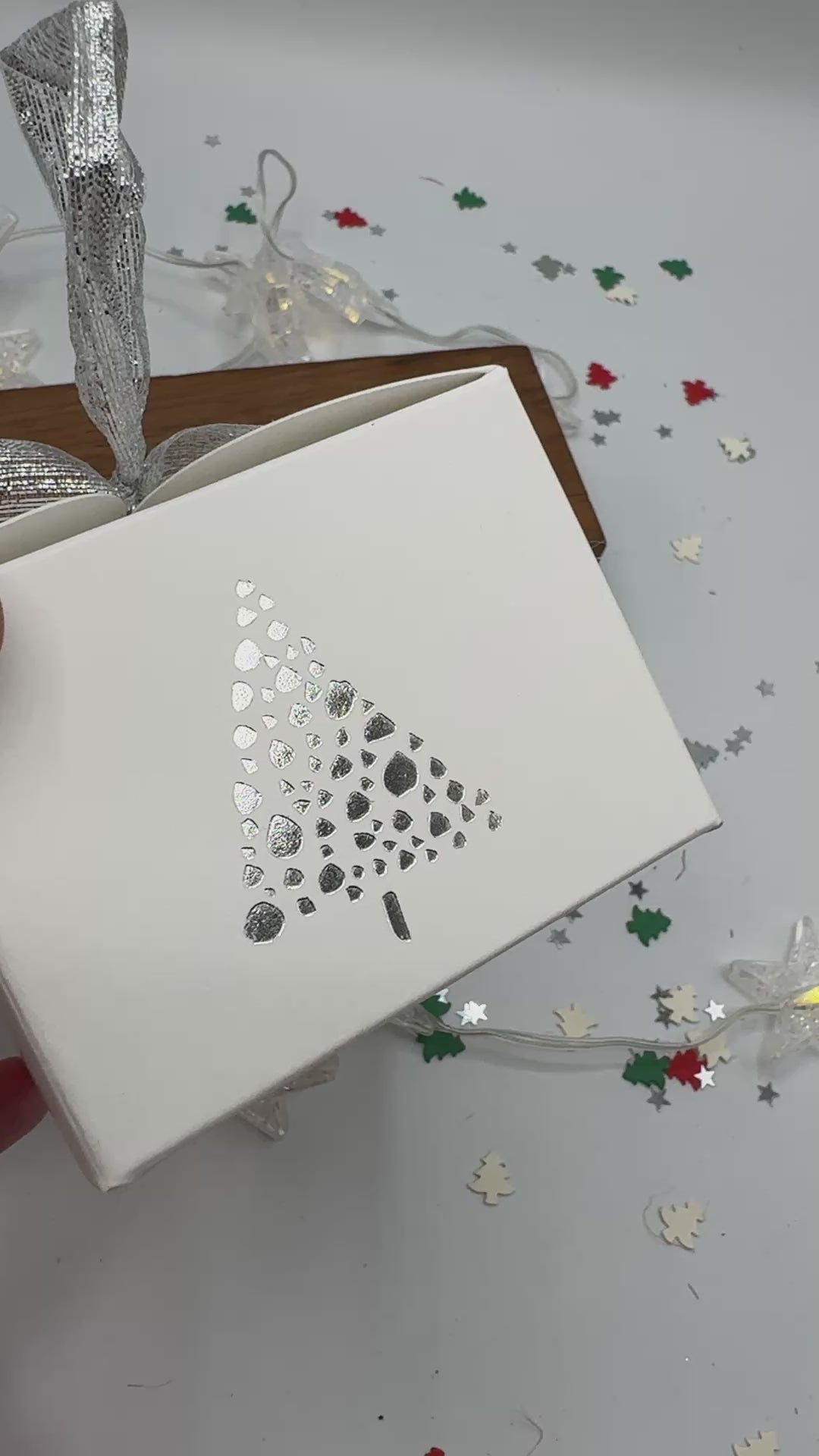 CHRISTMAS ADVENT/TABLE GIFT BOXES (R/W) - Silver Foiled Tree