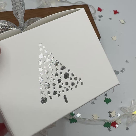 SILVER CHRISTMAS TREES Christmas Table/Advent - Tie Top Gift Boxes - Set of 6 with Silver ribbon | Size 8 x 8 x 6cm